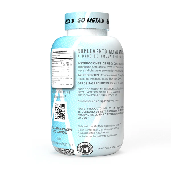 Omega+ de Meta Nutrition contiene Omega 3 con los ácidos grasos esenciales poliinsaturados más estudiados científicamente (EPA y DHA).